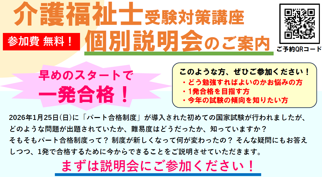 2026年1月25日(日)に実施された、介護福祉士国家試験の合格発表が、本日(3月16日に)行われました。合格されました皆様、大変おめでとうございます。