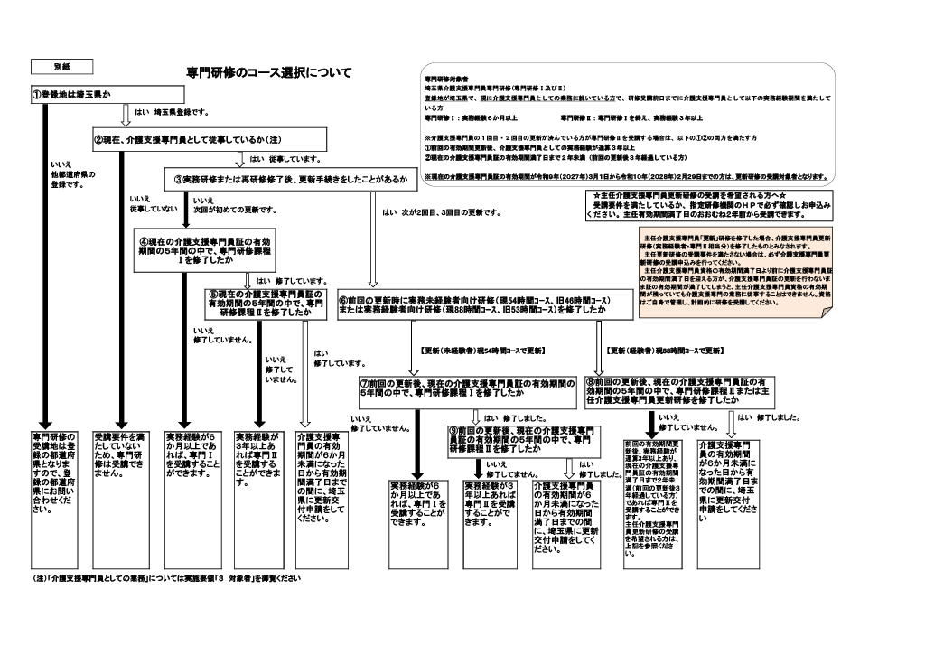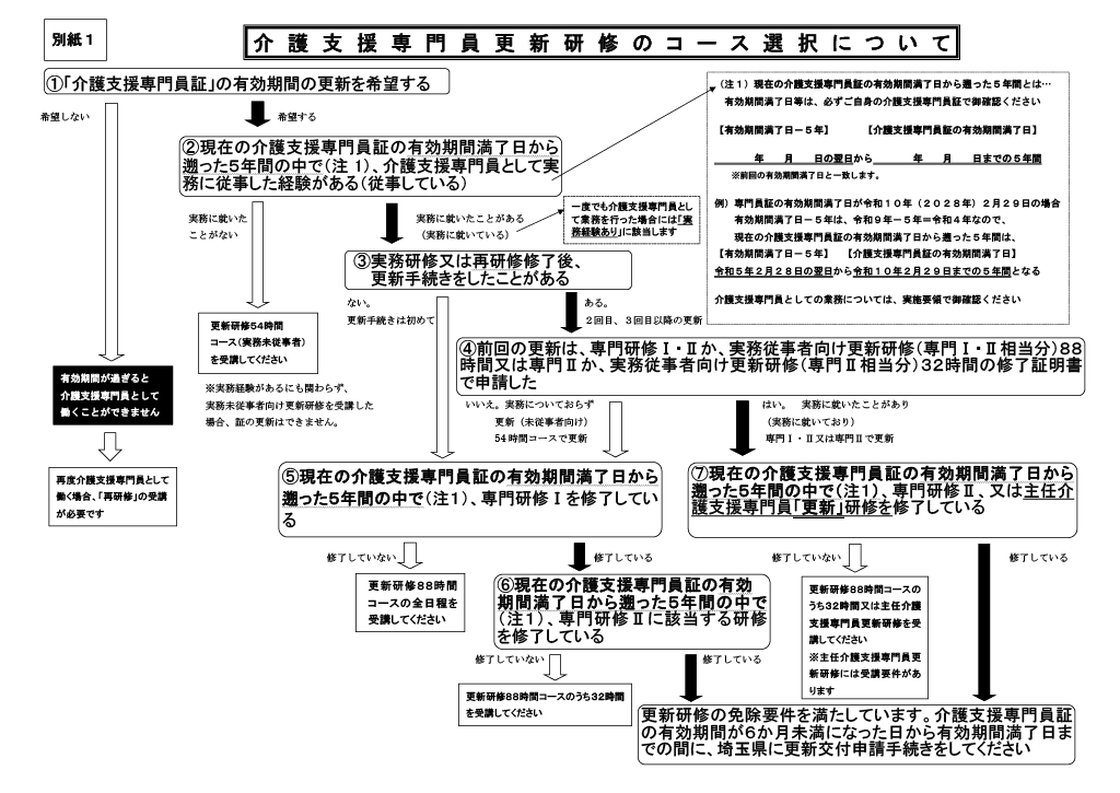 受講する研修が分からない方は、以下の更新研修と専門研修のコース選択を参考にしてください。